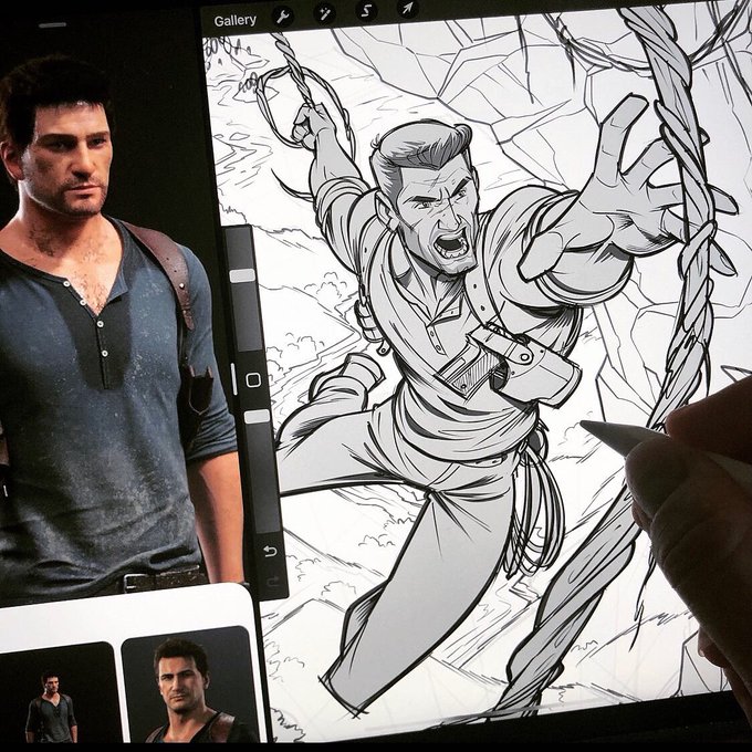 Nathan Drake from Uncharted in the works! 😁 Working on this one on the iPad Pro using Pro Create. Inks coming in next followed by color. More coming soon! #uncharted #nathandrake #workinprogress #fanart #drawing #videogameart #procreate #sketching #illustration #art #artwork