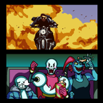 You heard of the KFC gang, now get ready for: sans. UNDYNE! ! ! Susie~ (Newgrounds post: newgrounds.com/art/view/ditch…) #DELTARUNE #undertale | #sans #undyne #susie | #pixelart #pixelartist | #ドット絵~