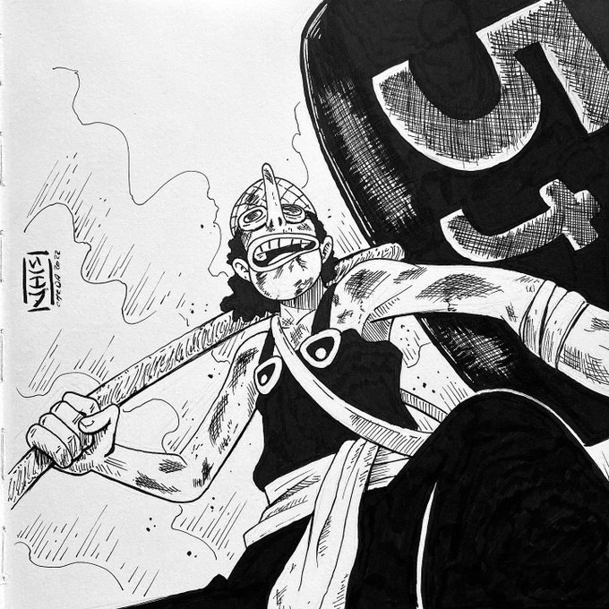 Inktober Day 20 - Bluff . The great Captain Usopp and his 5 ton hammer took down a few bad guys on Alabasta. . #inktober #inktober2022 #inktober2022bluff #inktoberday20 #usopp ##ONEPIECE
