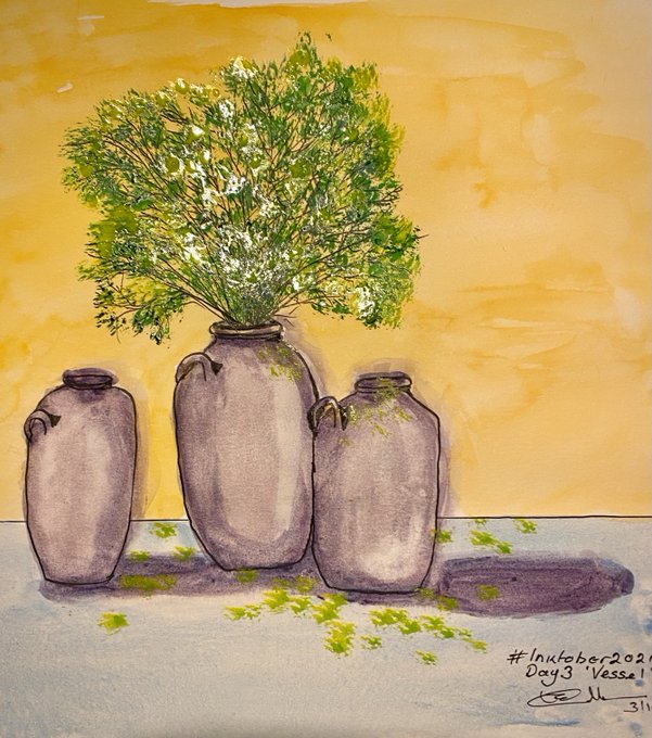 A reminder of summer in #watercolour today, it’s so stormy in #fife I cheered myself up with lashings of #pink #flowers #vase #painting #ArtistOnTwitter #art