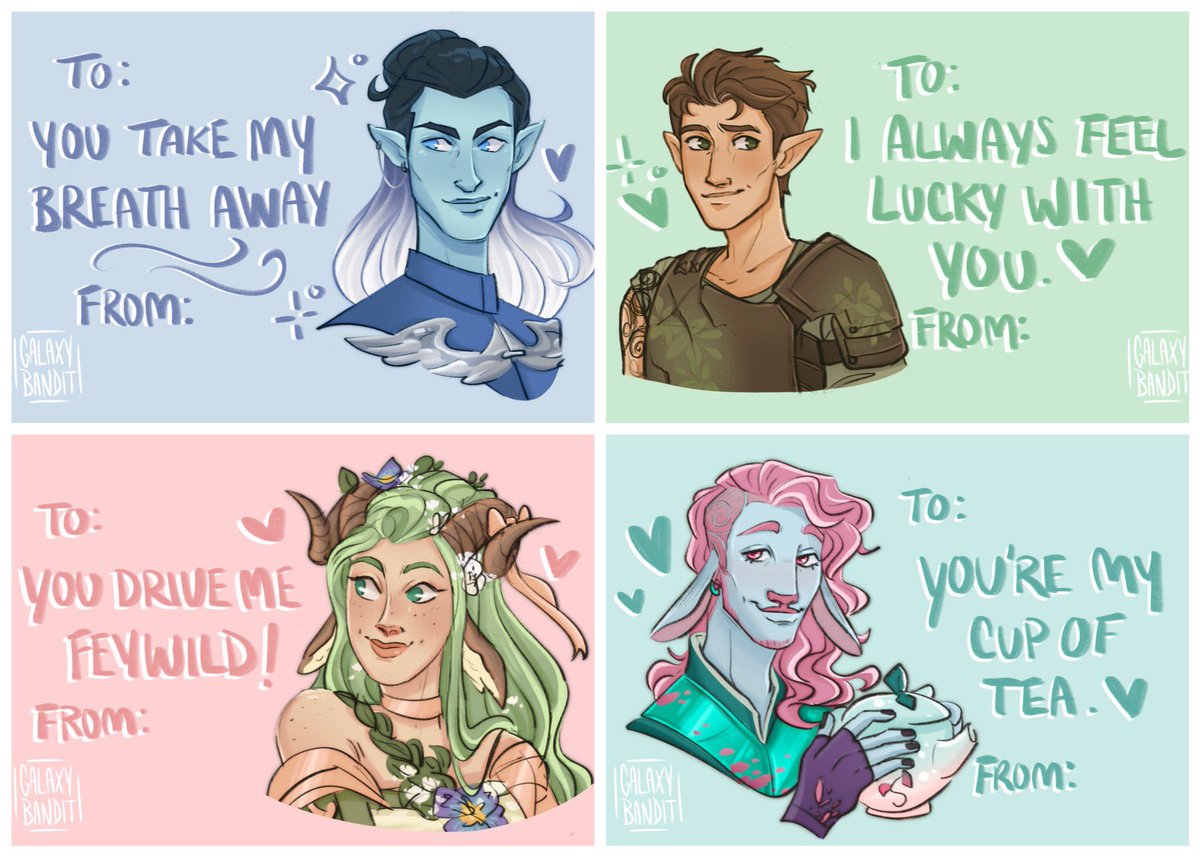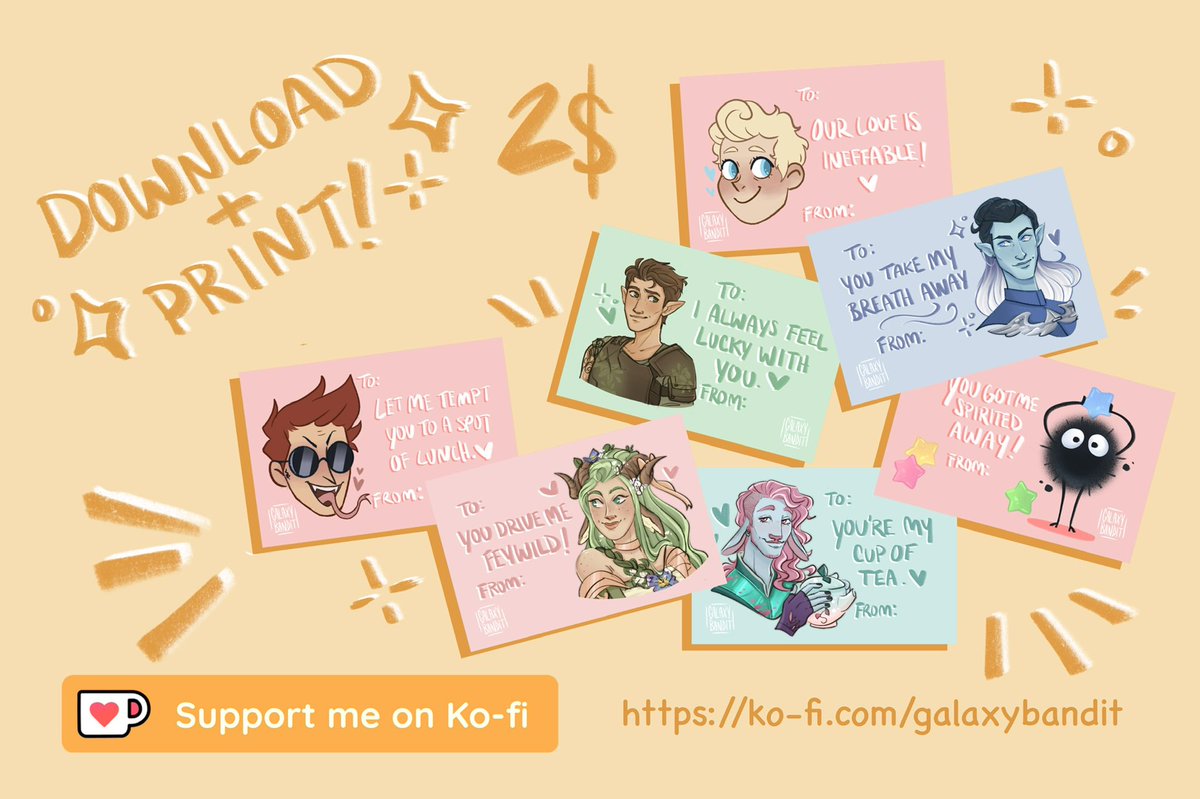 💖✨V-day is around the corner!🥰 💕 Get a digital download to print and gift to friends @ ko-fi.com/galaxybandit/s… ! #valentinecard #criticalrolefanart #IneffableHusbands #vday