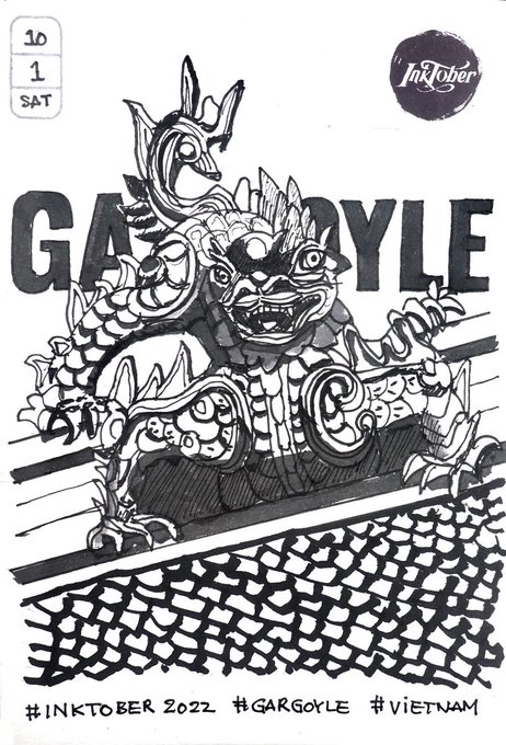 毎日続けている絵日記も、10月はInktoberに初チャレンジするので、1ヶ月間白黒ペン画が中心となります。今日のお題はガーゴイル。ベトナムの鬼瓦を描きました。 #inktober2022 #inktober #gargoyle #vietnam #urbansketch
