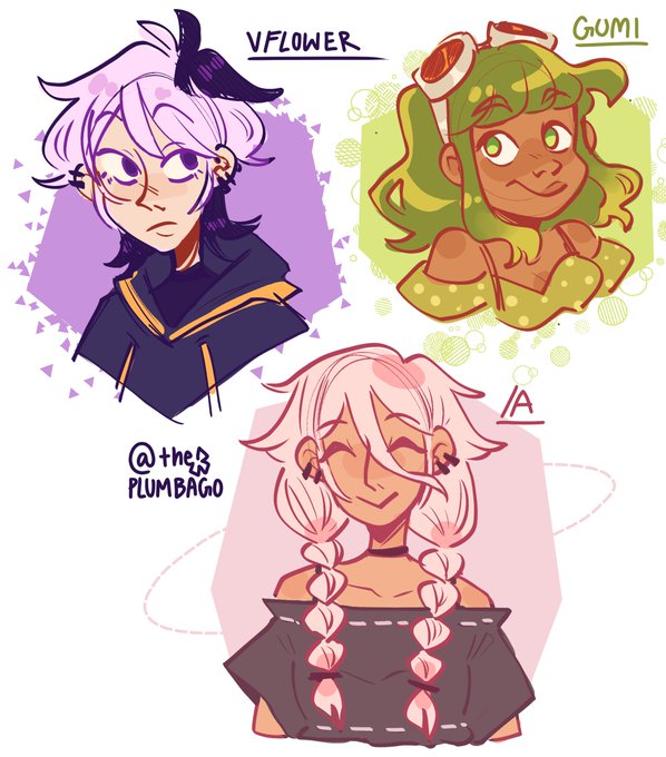 I’m back and free from school! Here’s some vocaloid doodles I did trying out a new art style 💜💚❤️ #vflower #megpoidgumi #vocaloid #vocaloidfanart