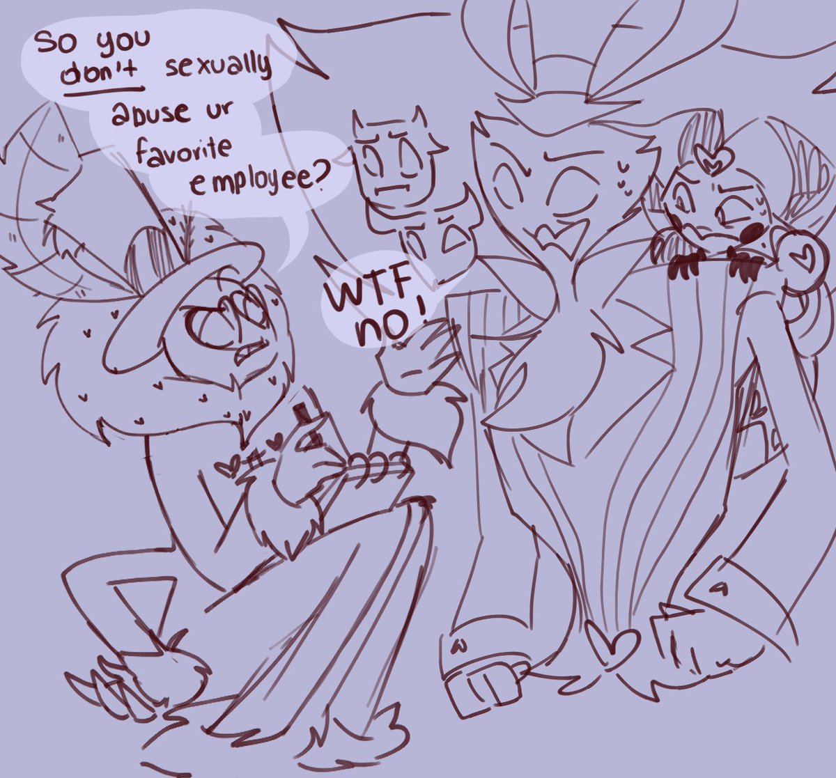 Redrew a sketch I did when ep 7 came out but it's so bad #HelluvaBoss #Asmodeus #Fizzarolli #Valentino #HazbinHotel