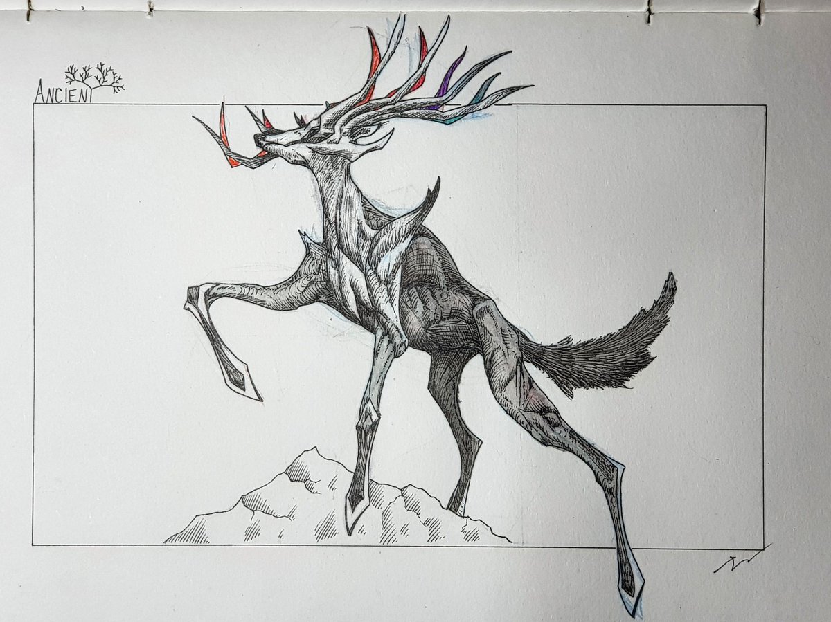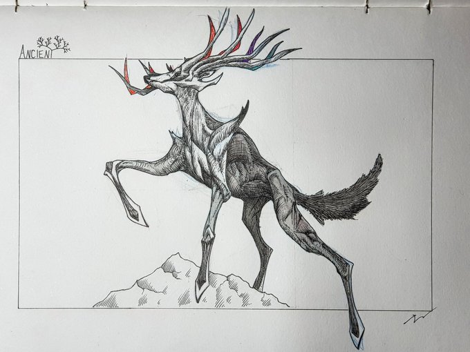 Inktober day #23 - Ancient. Xerneas the ancient Pokémon stag who stands above Valhalla. . . . . instagram.com/p/B4C16hwDd37/… @inktober #inktober #inktober2019 #drawing #art #doodle #artist #sketch #sketchbook #lineart #ink #penandink #pokemon #xerneas #Eikþyrnir #valhalla #mythical