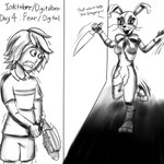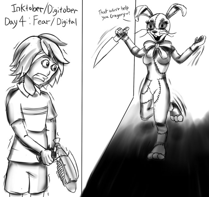 Day 4! I combined both and focused on Digimon yesterday so I focused on Fnaf today. You can see I have like 0 experience drawing kids XD (Digital cause like Glitchtrap affect Vanny/Vanessa and its technically a digitalized human) #Vannyfnaf #inktober2022 #digitober