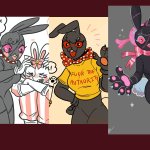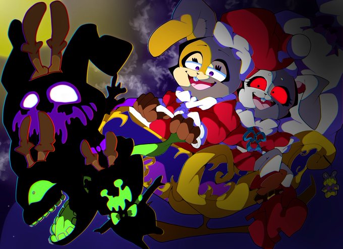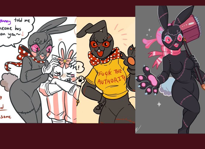 Uh oh. Looks like Delete the bunny lover is at it again. Much to Vanny's annoyance. #FiveNightsAtFreddys #FNAF #fnafsecuritybreach #fnaffanart #Vanny #VannyFNAF #Delete #Cyberchase #PBS #PBSKIDS #Crossover #bunnygirl #bunny #art #ArtistOnTwitter #robot #hugging #costume #rabbit