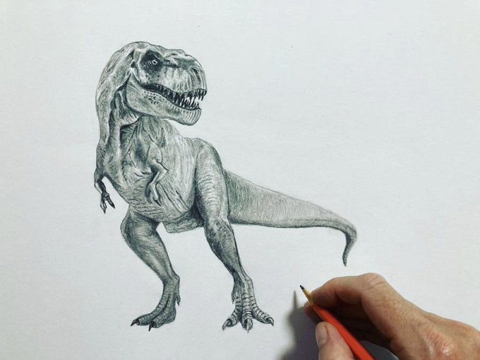 Finally finished. I'll fix the drawing, copy it, and add coloured reptile patterns. Hubby got me some very good quality pencil crayons. Hope all are doing well xxx #ArtistsOnTwitter #Dinosaurs #Velociraptor #PencilArt
