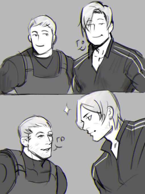 Когда друг придумал какую-то херню и ты на нее соглашаешься./ When a friend comes up with something stupid and you agree to it. #ResidentEvil #re #LeonKenndy #ChrisRedfield #fanart #vendetta #sketch