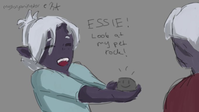 @Mysteryanimato2 and I talked about their childhood all yesterday and did some doodles… (the rocks name is doudou) 💕💕 #CriticalRole #criticalrolefanart #verinthelyss #essekthelyss