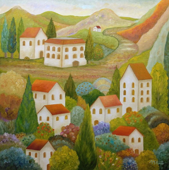 This is my painting "Perchance To Dream"(please click to see it in full). You can check it out here: fineartamerica.com/featured/perch… #art #arte #artlovers #kunst #repost #village #houses #oilpainting #contemporaryart #ArtistOnTwitter #landscape #artprints #trees #hill #mountain #stripes
