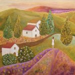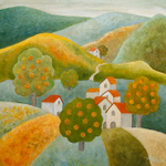 This is my painting "Calm Dawn". The original is for sale (please DM me if interested!) and you can also find very nice prints f it here: fineartamerica.com/featured/calm-… #art #paintings #artprints #woman #village #folk #autumn #fall #stripes #kunst #hills #trees #paths #artprints
