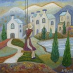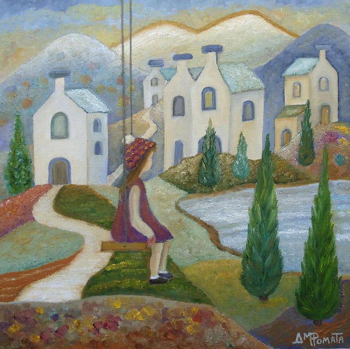 This is my painting "Hometown Girl". You can check it out here: fineartamerica.com/featured/homet… #art #arte #repost #artlovers #kunst #艺术 #oilpainting #contemporaryart #ArtistOnTwitter #landscape #stripes #houses #village #trees #hometown #mountains #girl #oleo #artprints