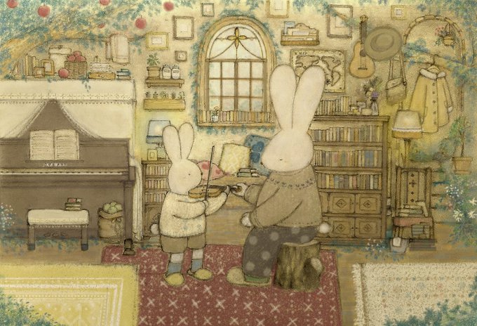 * 音楽のレッスン * 前を見て弾くのよ、って楽器をガッてされてるとこなの。笑 #イラスト #絵柄が好みって人にフォローされたい #一次創作絵師拡散フェス02 #Violin #ヴァイオリン #ピアノ #うさぎ