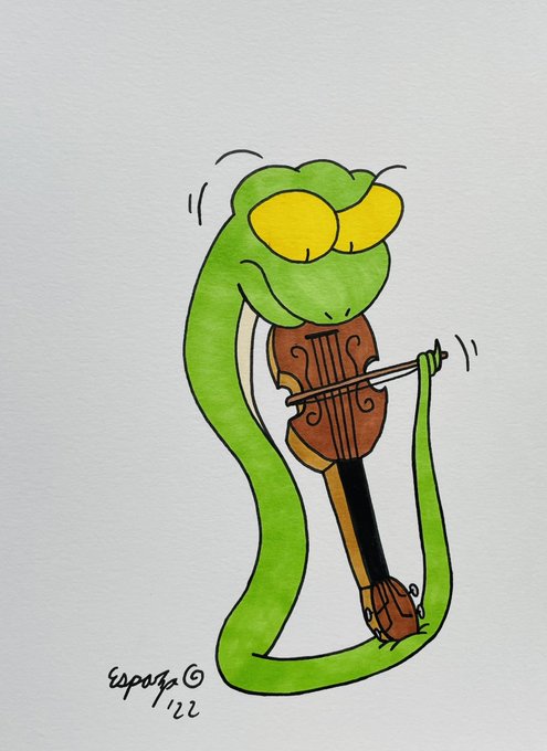 It’s EARLY @AnimalAlphabets time as I’m working in a place that’s totally not 5G friendly and doesn’t seem to work with 4G as well! This #Viper is fiddling around with a #Violin to calm our nerves in the meantime! #AnimalAlphabets