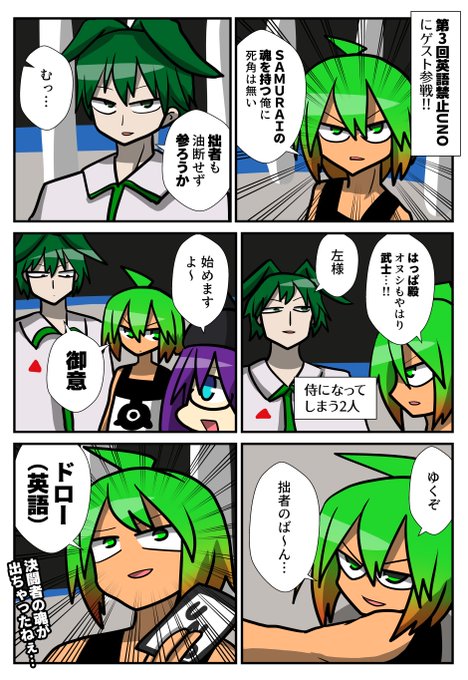 【バーチャル探検紀行72】 英語禁止UNOという男らしい企画!その配信において、俺は俺以外のSAMURAIに出会った。だがその男は、どうやらある界隈で右に出る者がいないマスコットであり、男ではなく女でも無いらしい…はっぱ殿…一体何者なんだ…!? #Vキャス漫画 #バーチャルキャスト #virtualcast #V探 twitter.com/nagi_knowledge…