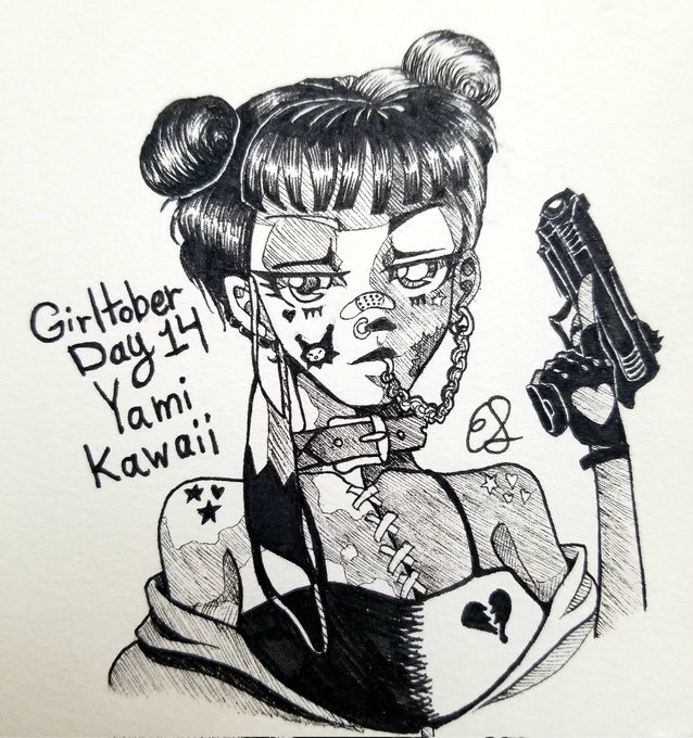 #Girltober Day 14 YAMI KAWAII I love this style. I wish I could make it more garish 🤣 #inktober #inktober2022 #inktoberday14 #yamikawaii #hyperpigmentation #Vitiligo