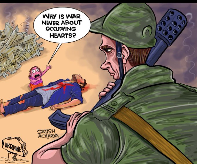 Ora #Atlantide #La7 #war @andreapurgatori con @dlfabbri @rulajebreal e collegamenti con @mannocchia dal #Donbass, #AndreaNicastro da #Mariupol, #FrancescoBattistini da #Kiev. E la mia vignetta.