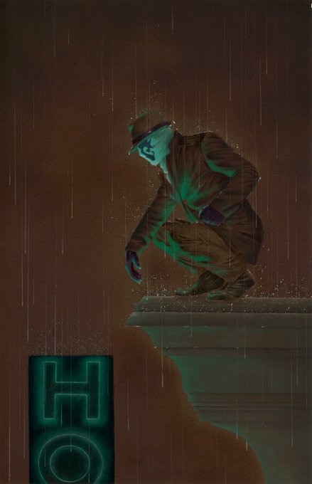 Rorschach. 2019. Private commission. Oil, pencil and ink spatter on paper. 12"x18". #art #illustration #watchmen