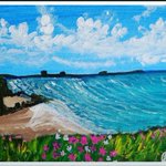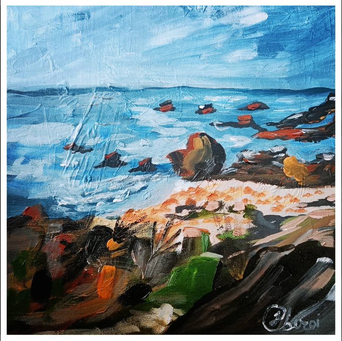 This is my painting “A summerday by the sea” 🎨 #seascape #summer #sea #waves #beach #clouds #reflection #island #oilpainting #art #artistontwitter