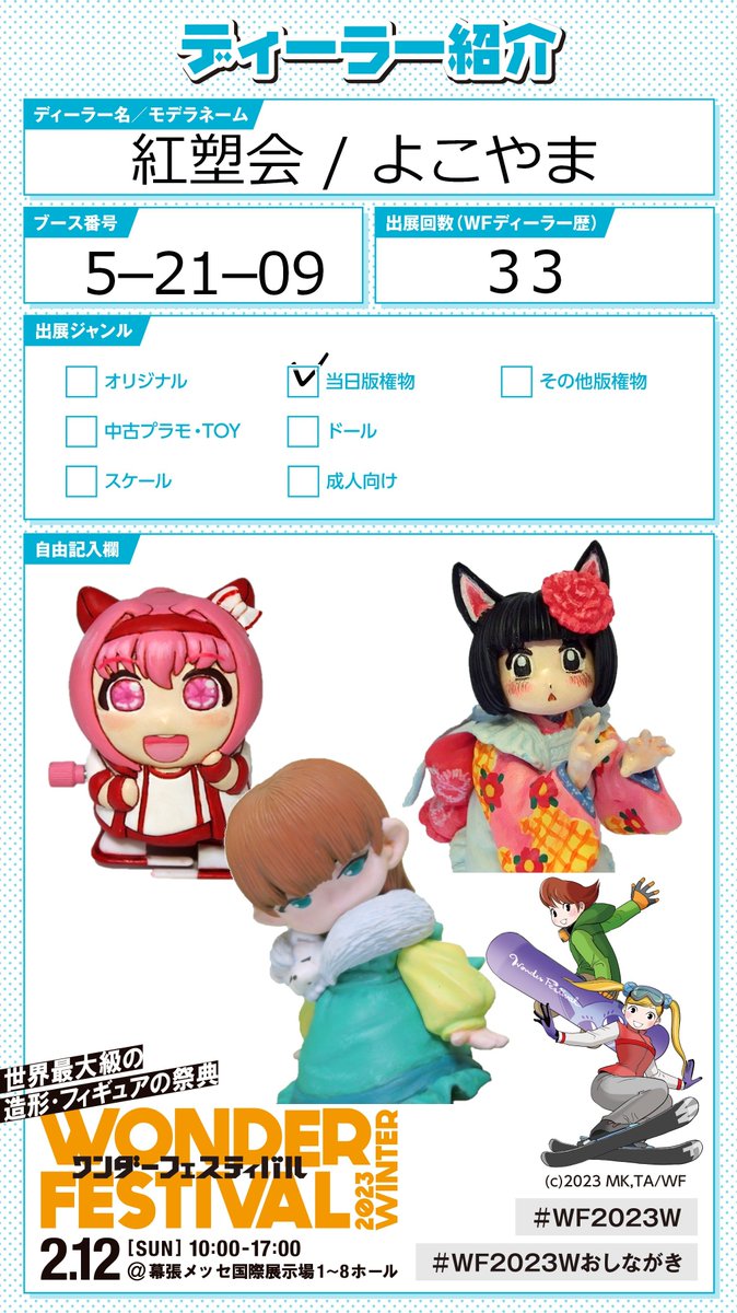 紅塑会(こうそかい) 5-21-09 森の女の子ルウリィ(スプーンおばさん) パタパタ!ハルウララ(ウマ娘 プリティーダービー) ばけねこのひなた(3月のライオン) すべて再販です #WF2023W #WF2023Wおしながき twitter.com/tetsu20000/sta…