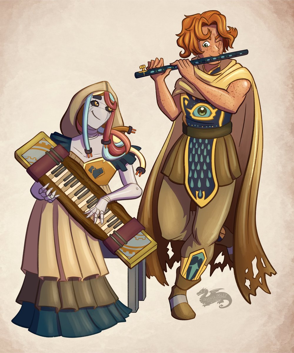 C*mmissioned Art for @TickTockKnight of their DND bards Decibelle the Warforged and Liam Wessley! . #characterart #DnD #warforged #ArtistOnTwitter