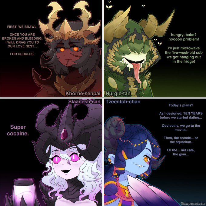 Slaanesh: the worst thing he can say is "no", right? RIGHT?! #WarhammerCommunity #webcomic #animeart #warhammer40k