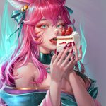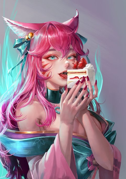 🦊Ahri & Strawberry Cake🍓 Artist: Bianca Jihee Yoon #Ahri #LoL #LeagueOfLegends #fanart #WildRift #RiotGames #ArtofLegends