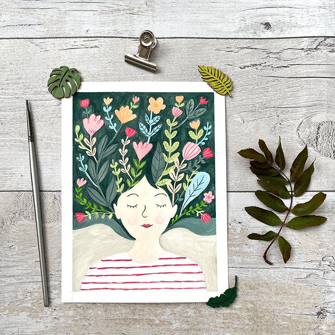 Hi #elevenseshour How are you? I sell original art just like this one of a kind original floral woman painting. 15% off your first order fawashah.co.uk/product-page/o… #smallbiz #illustration #artistsontwitter #painting #artwork #art #sale #nature #gouache #giftidea #floral #woman