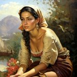 This is my painting "Calm Dawn". The original is for sale (please DM me if interested!) and you can also find very nice prints f it here: fineartamerica.com/featured/calm-… #art #paintings #artprints #woman #village #folk #autumn #fall #stripes #kunst #hills #trees #paths #artprints