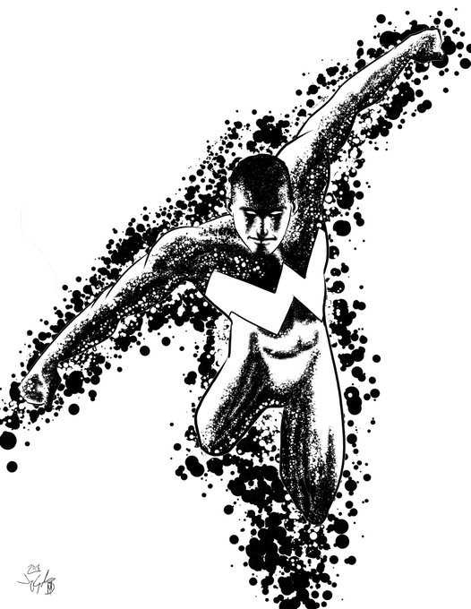 #Inktober Day Eight: Wonder Man. Lots of Kirby dots. Video in my YouTube channel: youtu.be/OOMqOgqqgfg #marvel #comics #WonderMan #Avengers