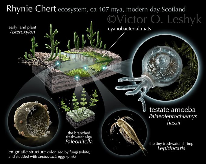 of course #WorldSoilDay should also mean celebrating how much soils teach us by preserving the past: my #Sciart #paleoart of the Rhynie Chert ecosystem for @CStrulluDerrien is based on fossil soil that was hardened into sinter by water from hot springs nhm.ac.uk/discover/news/…
