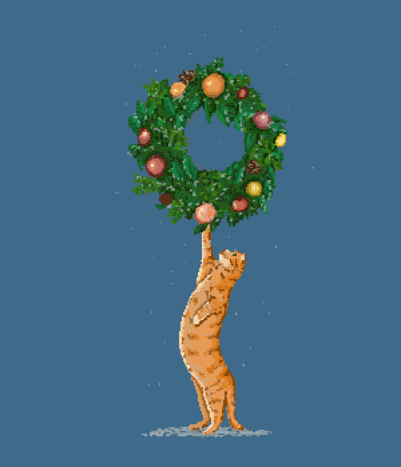 Сhristmas #wreath ❄️🌟 For @Pixel_Dailies #pixel_dailies #ドット絵 #digitalart #pixelartist #cat #cute #pixel #art #pixelart
