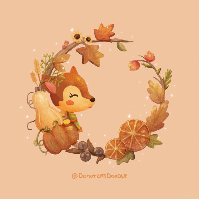 #beartober22 day 4 - fall wreath #AnimalCrossing #ACNH #wreath #illustration #inktober2022 #Drawtober2022
