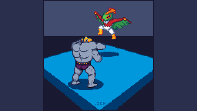 Today's @Pixel_Dailies theme, #wrestler . Hawlucha Vs. Machamp! Original Resolution: 144 x 144 px. #pixel_dailies #pixelart #ドット絵 #aseprite #digitalart #pixelartist #pokemonfanart