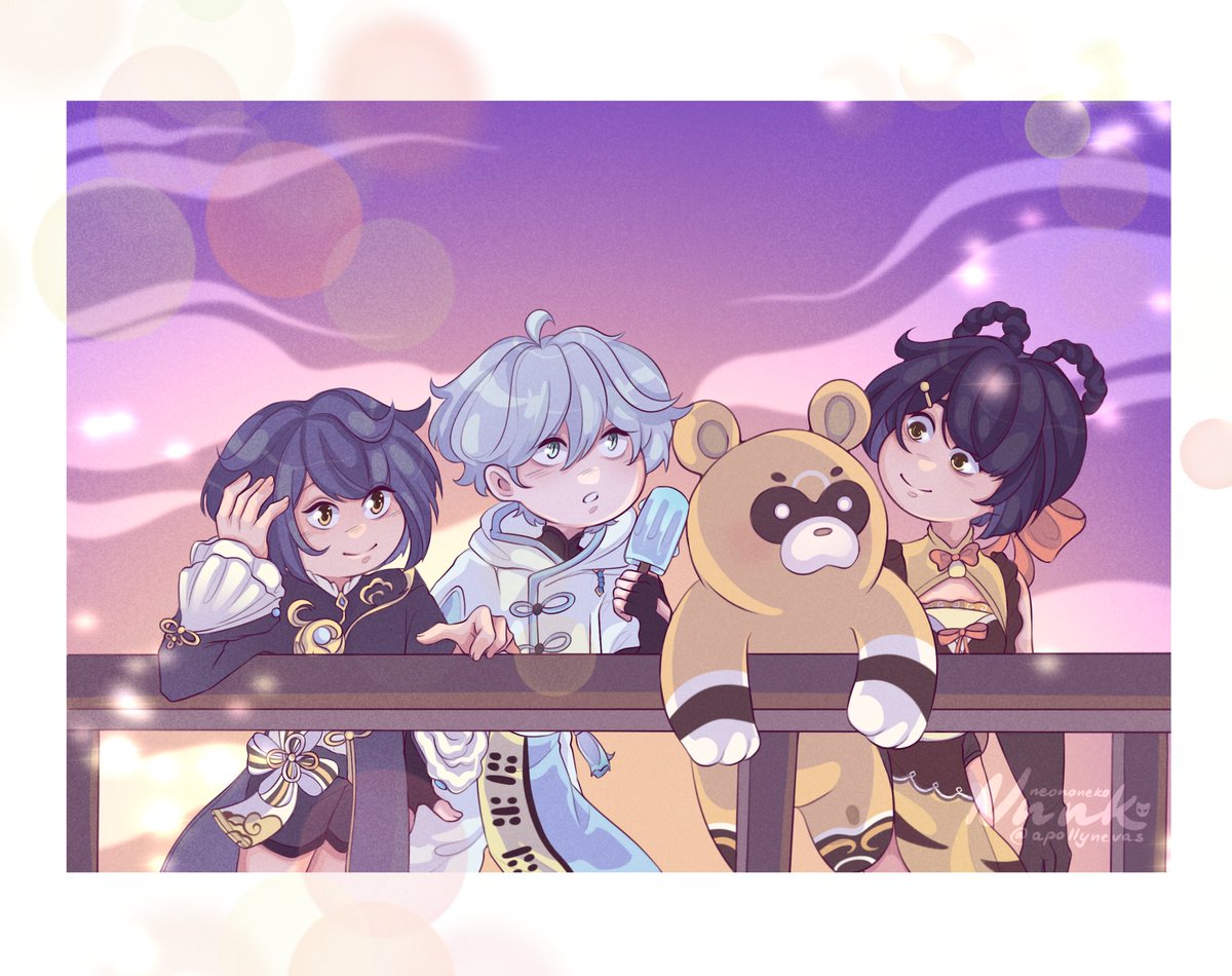 Best friends 🥳 and chibi again 😲 #Xiangling #xingqiu #Chongyun #Genshinfanart #chongyunfanart #xingqiufanart #xianglingfanart