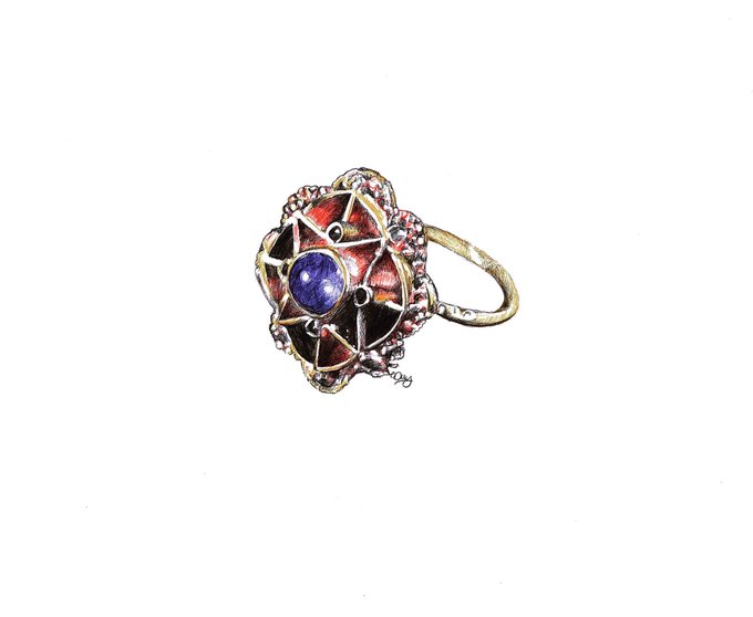 Day 1 of #inktober2019 #ring This gold ring was found in #yorkshire. The ring is named ‘The Escrick ring’ and was found by a metal detectorist. It has a beautiful blue gemstone in the middle. Archaeologists believe this ring dates back to the 5th century. 💍