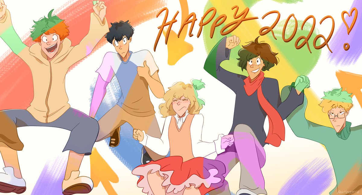 HAPPY 2022 EVERYONE 😭🙏💕💕 ty all for an amazing year! Congrats on getting thru 2021 as well yall 🛐👑 | #HAPPYNEWYEAR2022 #HappyNewYear #haikyuu #haikyuufanart #hinatashoyo #kageyamatobio #yachihitoka #yamaguchitadashi #tsukishimakei