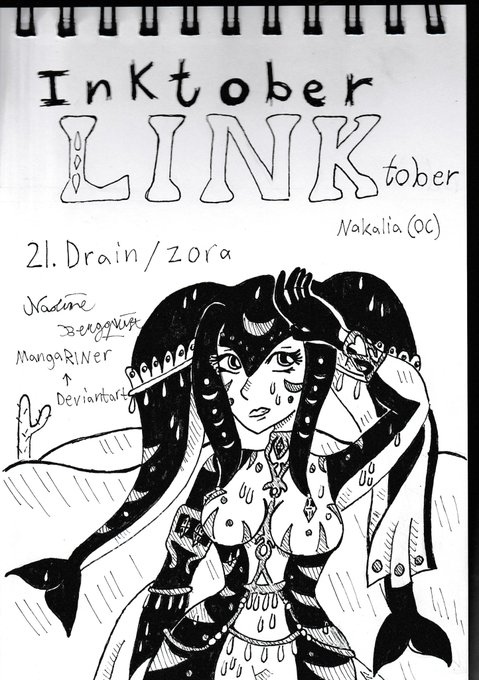 Inktober year 2018. Day 21. Word: Drain and Linktober day 21 Zora.#MangaRINer #NB #MikanRin #linktober #Linktoberchallenge #linktober2018 #inktober #drain #Zora #oc #originalcharacter #nakalia #gerudodesert #sweating #loz #Tloz #legendofzelda #botw #fanart #Videogamefanart