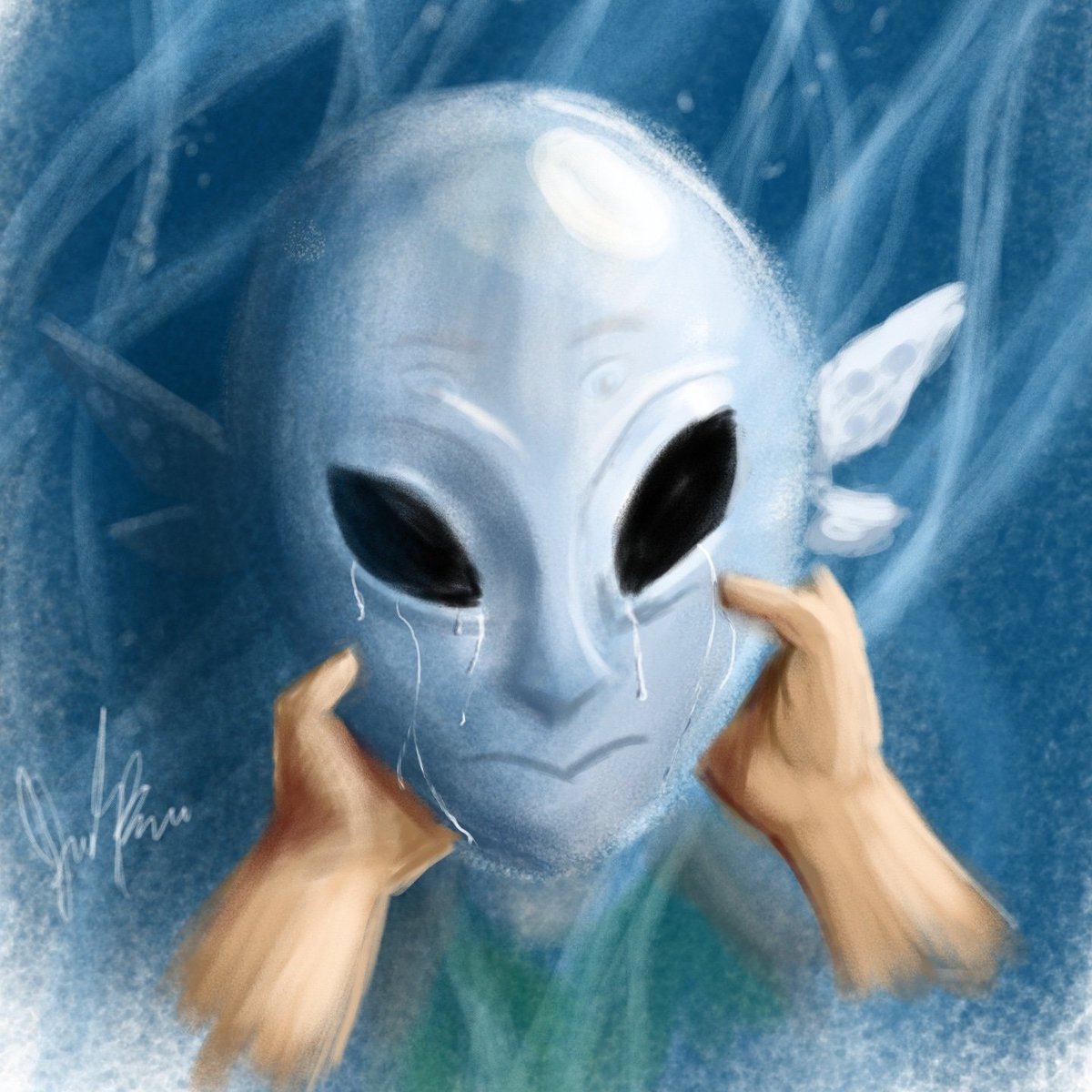 Day 24 of #mermay2021 #SeaTreasureMermay "Weapon" Redraw of my very first full body painting not drawn with MS Paint Technically no mermaid but based on marine life forms zumkritzeleck.com/mermay-2021/ !B #KleineKunstklasse #Mermay #FantasyArt #DigitalArt #BreathOfTheWild #Zora