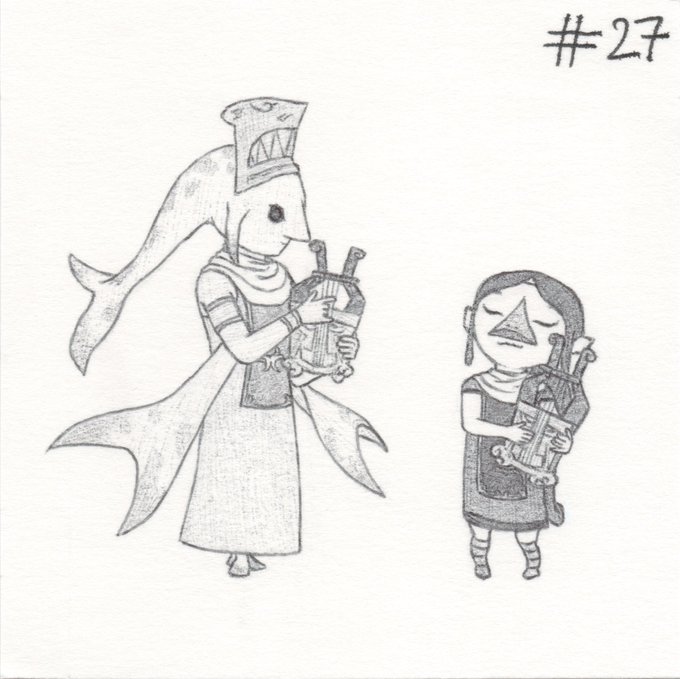 #Inktober2020, Day 27: #Music. Laruto playing the Earth God’s Lyric with Medli to help her awaken as the new Earth Sage. #inktober #inktobermusic #TheLegendOfZelda #Zelda #TheWindWaker #Medli #Laruto #Nintendo #harp #zora #rito #sage #art #fanart #traditionalart