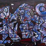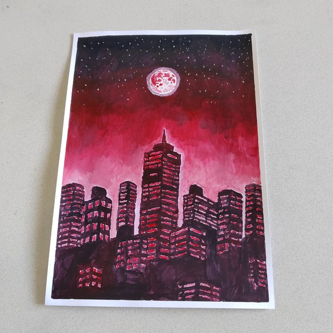 The Night Is My Stage The Night Has No Age #painting #acrylic on paper 30x40 cm peterseelig.com/index.php?fram…