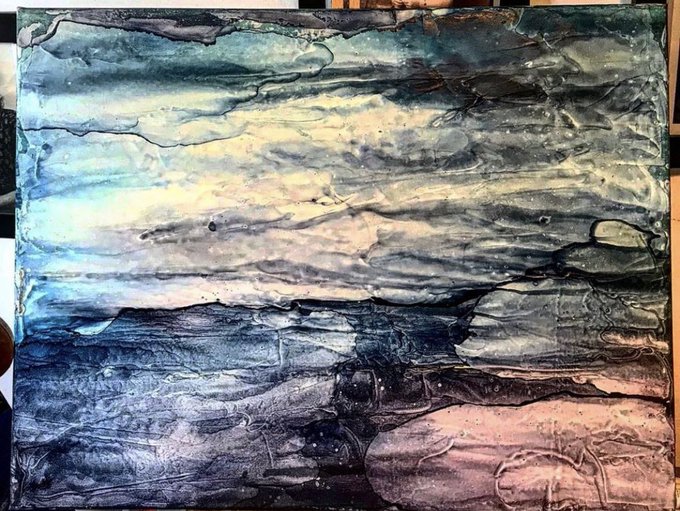 Seascape. Alcohol Inks over Acrylic Gesso on Canvas #ArtistOnTwitter #contemporaryartist #alcoholink #acrylicart #painting