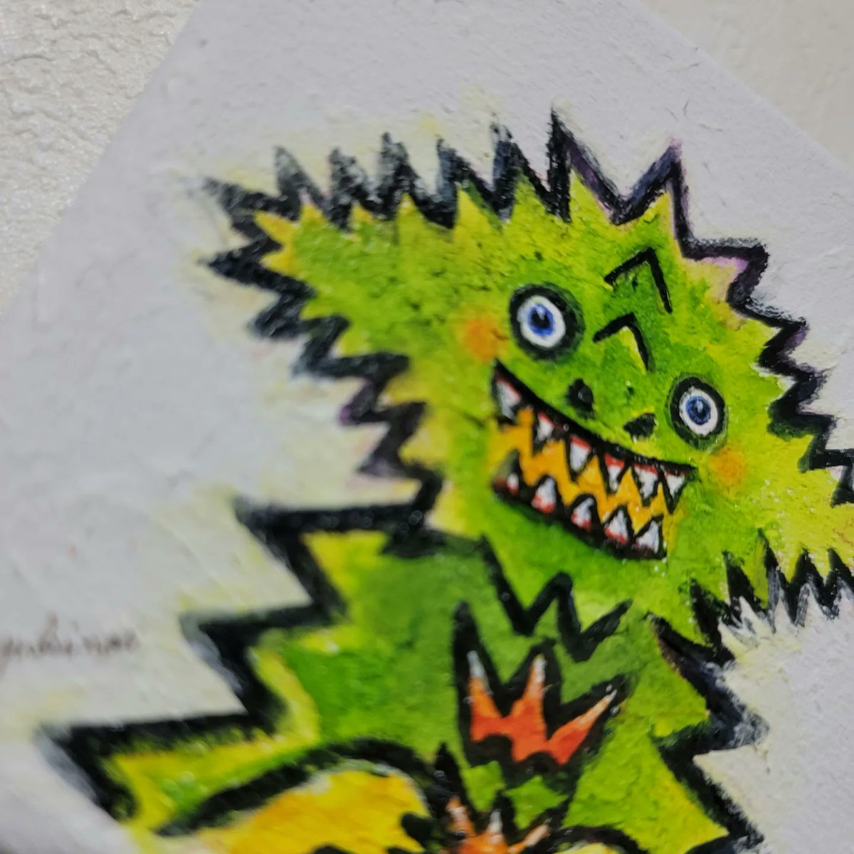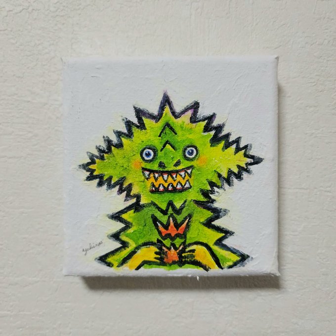 前回に引き続き。100×100mmのキャンバスにパルプベースで顔彩が吸い込みやすい下地を作って、アクリル絵の具で輪郭を描いた後、着彩した作品。 「怪獣『ダグダグ』」“kaiju Dagu-Dagu" この方法で物語「新作ドリルリラ」の制作に入ります。 #illustrations #acrylicpaint #kuretake #顔彩 #Drilllira
