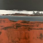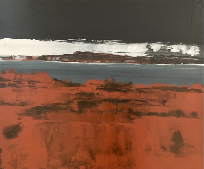 Calling this finished: just needs a title... Acrylic on cradled wood panel, 50 x 60cm. Will let it dry, varnish + add to my website.🙂 #acrylicpainting #abstract #landscape #seascape #ArtistOnTwitter