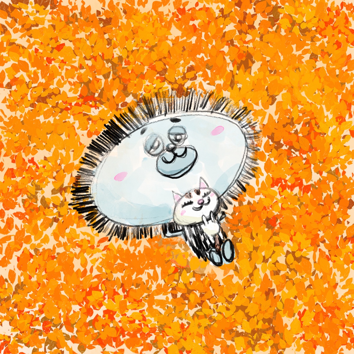 いろんなブラシとか使ってみてなんとなく好みが定まって来た。 #AdobeFresco #イラスト #絵 #iPad #ApplePencil #チビロー #ヨギリン #水彩 #photoshop #猫 #AdobeCapture #紅葉