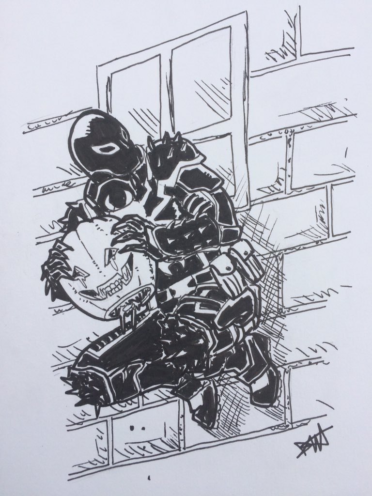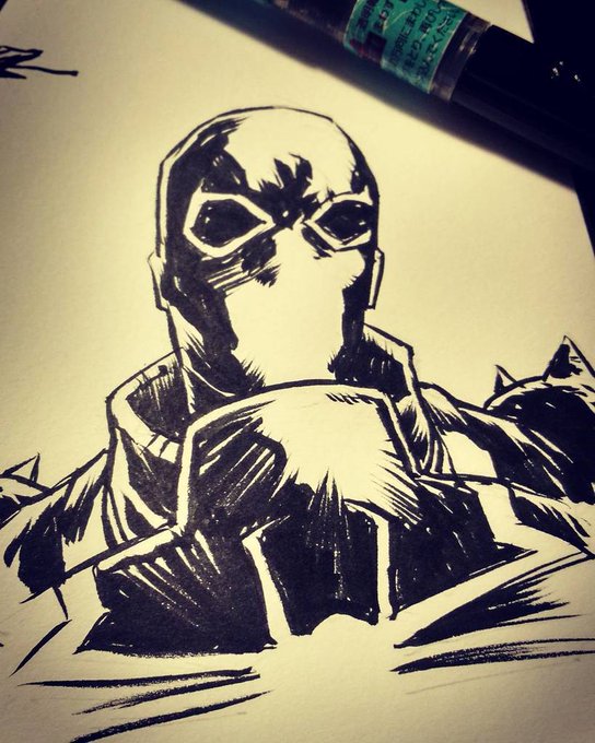 アメコミ模写 エージェント・ヴェノムを描きました。一時間ちょっと 今日は調子が悪くてあきらめようかと思いましたがなんとか描けました。 #Venom #marvelcomics #AgentVenom