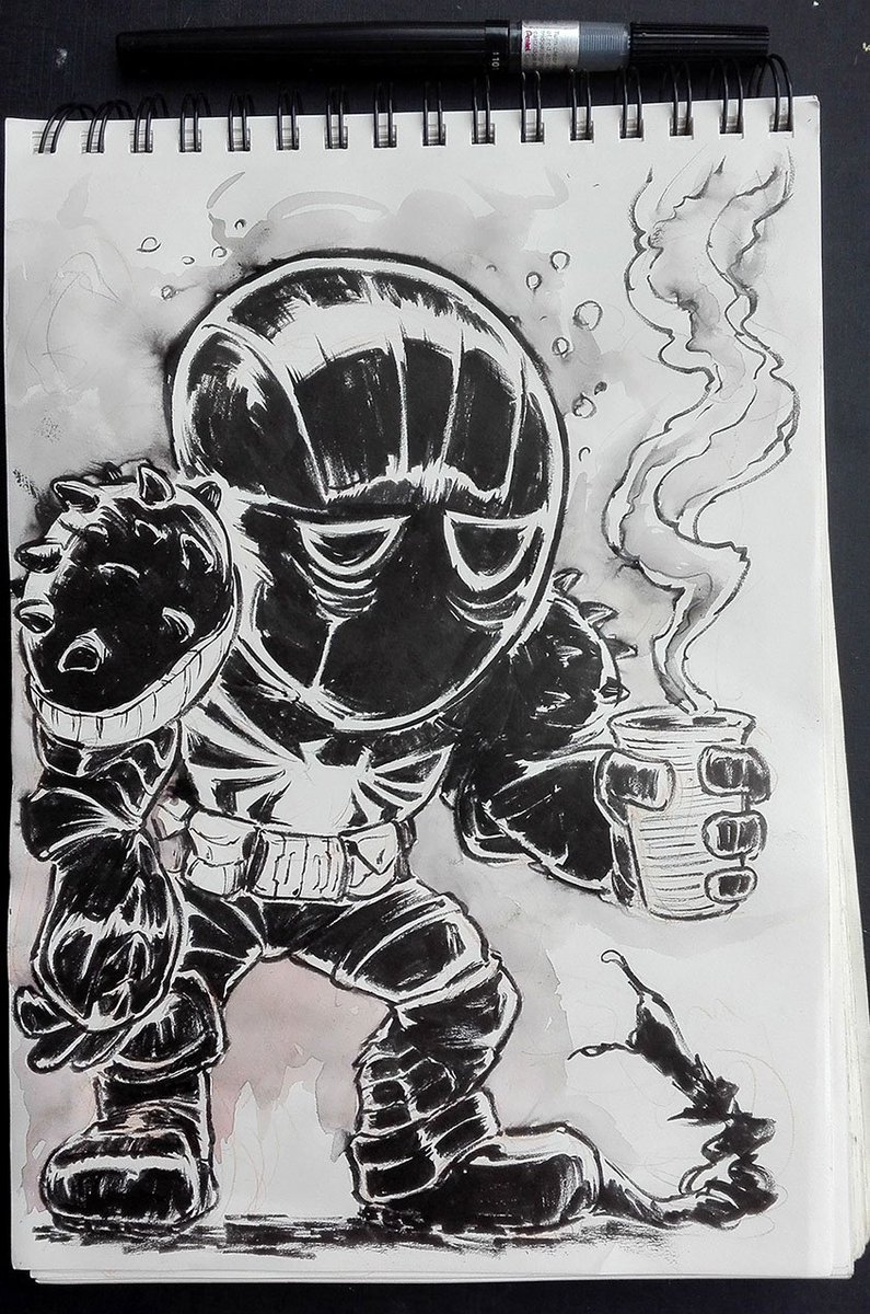 Inktober day 7: Exhausted. #AgentVenom #Inktober #Inkotber2018 #SD #Chibi #coffee #Symbiote #FlashThompson