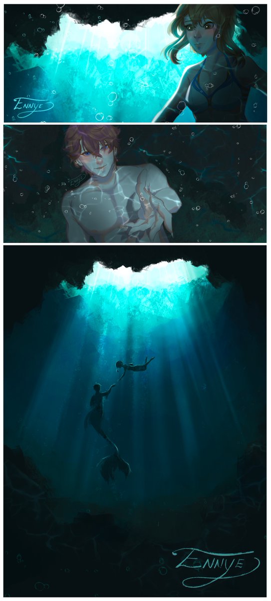 Childe: Just take my hand and come with me. #GenshinImpact #chilumi #tartaglia #Lumine #genshinfanart #childexlumine #Nobile #Ajax #Tartagliaxlumine #fanart #Mermaids #Childe
