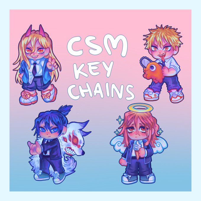 CSM KEYCHAIN PRE-ORDERS OPEN NOW! they will be 2.5" with epoxy finish pre-orders will last around a week! link in bio and replies #chainsawmanfanart #animemerch #denji #aki #power #angeldevil
